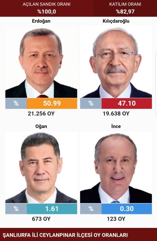 14 Mayıs Seçimlerinde Ceylanpınar'da Cumhurbaşkanlığı Tablosu