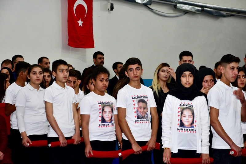 İlçe kaymakamı Keklik'in konuşmasının ardından PKK/PYD'li teröristlerce düzenlenen havan saldırısında şehit olan 11 yaşındaki Elif Terim ve Mazlum Güneş üzerine yazılmış şiirler okundu. Salonda duygusal anlar yaşanırken bazı dinleyiciler gözyaşlarına hakim olamadı.