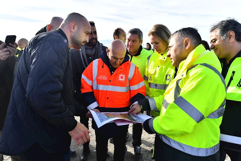 4.faz inşaat alanının ardından Başkan Soyer, mevcut ünitelerdeki revizyon çalışmaları, ıslah çalışması sürdürülen çamur biriktirme sahası ve delta çalışmalarının sürdüğü flamingo gözlem noktasını inceledi.