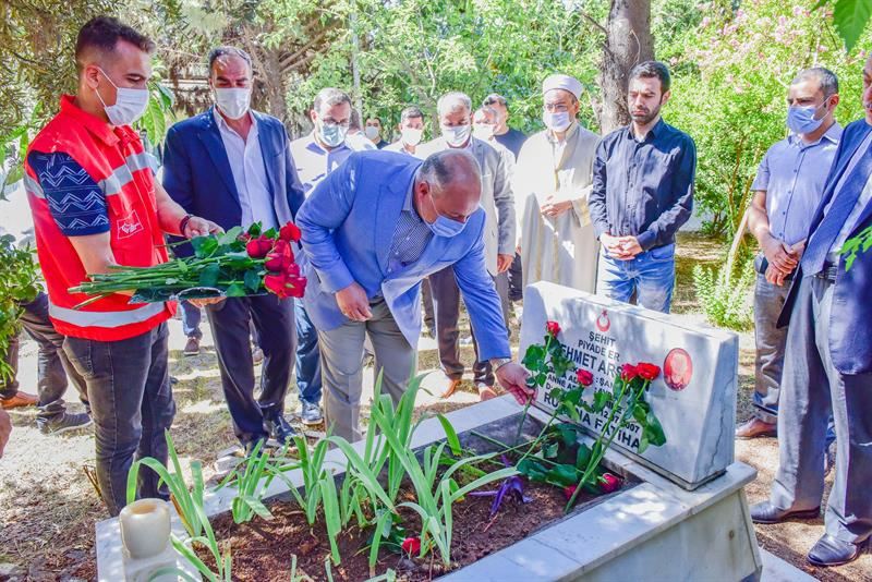 Kanlı darbe girişiminde hayatını kaybeden şehitler Ceylanpınar ilçe genelinde düzenlenen ziyaretler ile anıldı. Sabah saatlerinde düzenlenen kabir ziyareti programına, Ceylanpınar ilçe Kaymakamı Cüneyt Caner, Cumhuriyet Savcısı Fatih Kalaycı, Belediye Başkanı Feyyaz Soylu, Emniyet Müdürü Hakan Uzundağ, Belediye Başkan Yardımcısı Ümit Bilgin, Sosyal Yardımlaşma ve Dayanışma Vakfı Müdürü Mehmet Şengül, Sosyal Hizmet Merkezi Müdürü Ali Dondurmacı ve Milli Eğitim Müdürü Zeydan Kurt ilçe mezarlığında bulunan Şehit Piyade Er Mehmet Arslan’ın kabrini ziyaret ederek dualar edilip, karanfiller bırakıldı.