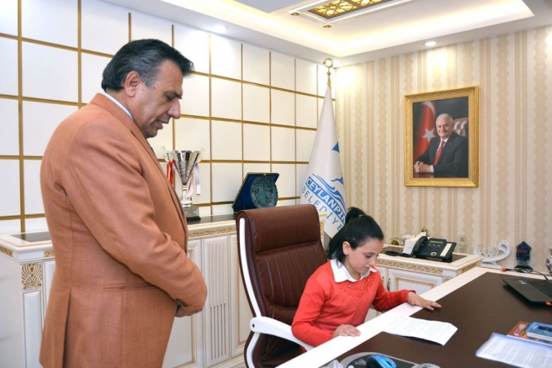 23 Nisan Ulusal Egemenlik ve Çocuk Bayramı etkinlikleri kapsamında Belediye Başkanı Menderes Atilla'nın koltuğuna oturan Alparslan Okulu öğrencisi Gülseren Suer belediye başkanı olmanın keyfini yaşadı. Öğrencileri başkanlık makamında Belediye Başkan vekili Cemal Karatay ile Özel Kalem Müdürü Aziz Aydın karşıladı. Temsili tören yapılan başkanlık makamında belediye başkanı koltuğu Başkan Vekili Cemal Karatay tarafından Gülseren Suer'e devredildi. Başkanlık koltuğuna oturan Suer ilk icraat olarak Özel kalem Müdürü Aziz Aydın'dan belediye çalışmaları hakkında bilgi istedi. Başkanlık koltuğuna oturan Suer'e hizmetler hakkında sunum yapıldı. Suer daha sonra parklarda çocukların eğlenebilmeleri için ne tür çalışmalar yapıldığını sordu. Yapılan sunumun ardından Başkanlık koltuğuna oturan Suer, bütün çocukların 23 Nisan çocuk bayramını kutladı.