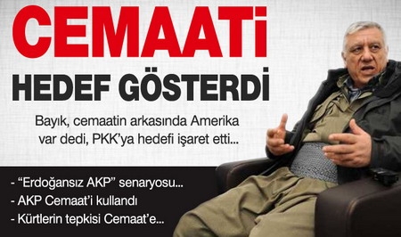 Cemil Bayık röportajda Kürtlere hedef olarak Cemaati göstererek şu ifadeleri kullandı: "Kürtlerin tepkileri AKP’ye değil Fethullahçılara yönelsin. Bu arada iktidarını güçlendirir ve kendisini Kürtler için bir kurtarıcı göstermeye çalışır ki dikkat edilirse propagandalar da hep o yöndeydi. Burada AKP’nin Cemaatçileri kullanma ve teşvik etme durumu da var. Cemaatçiler de buna dayanarak PKK’ya darbe vurup Kürdistan’da savaşı kazanmış bir güç olarak iktidara gelmek istedi. Bu konuda belli bir savaş yürüttüler. Binlerce insanı zindanlara attılar. Oslo sürecine müdahaleyi başlattılar. Dediler ki “İktidara bizim hâkim olmamız gerekir!” İktidara hâkim olabilmek için MİT’i ve Erdoğan’ı hedeflediler. İktidara gelmek istediler ama tabii ki AKP buna karşı durdu."