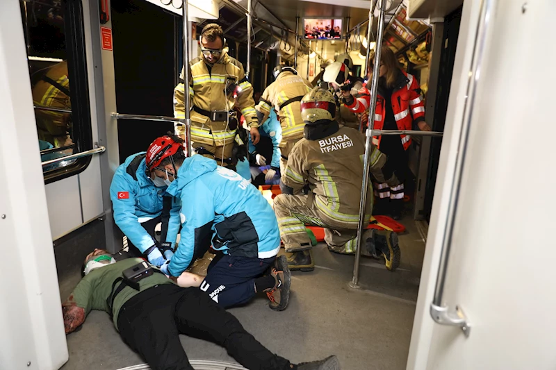 Bu tespitin ardından yürüyebilecek durumdaki yolcular, raylar üzerinde çıkış noktasına yönlendirilirken, müdahale ekipleri de vagona girerek içerideki yaralılarda durum tespiti yaptı. Bu tespit ekiplerin özel gözlükleri sayesinde kriz merkezinden de anlık takip edildi. Bu gözlem ve tespitlerin ardından da devreye UMKE ekipleri girdi. Yaralılara ilk müdahaleyi vagon içinde yapan ekipler, termal battaniyeye sardıkları yaralıları sedye ile raylar üzerinde istasyona kadar taşıdı. Yaklaşık 3 saat süren tatbikat, başarıyla tamamlandı.