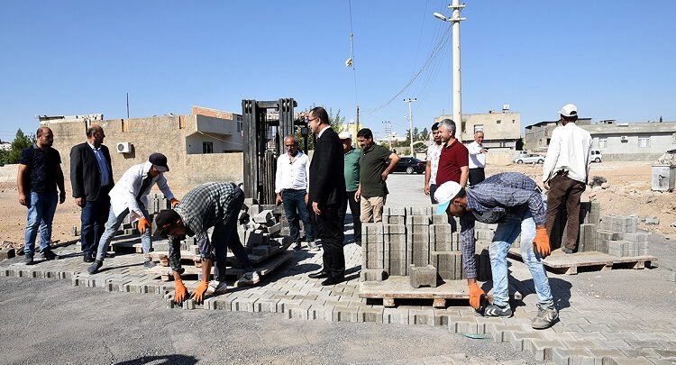 Ceylanpınar Belediye Başkan Abdullah Aksak, ilçe genelinde devam eden kilitli parke taşı çalışmalarını inceledi.