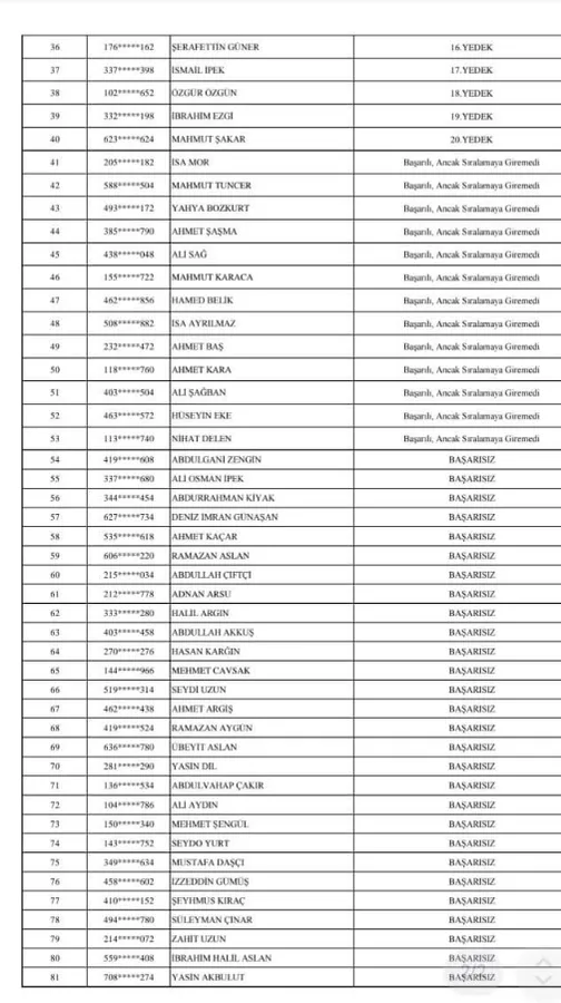 Adaylar arasında yapılan değerlendirme sonucunda traktör şoförü ile tır/çekici şoförü pozisyonlarında başarılı olan ve elenen isimler açıklandı.