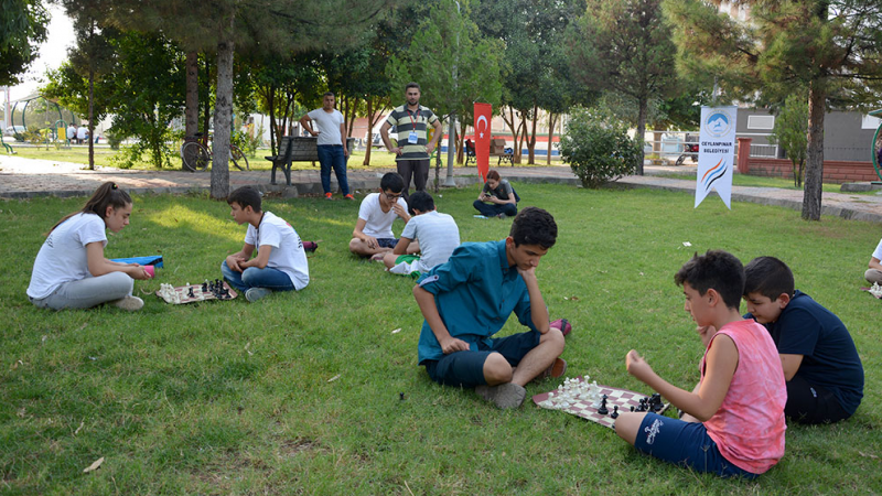 Türkiye Satranç Federasyonu tarafından bu yıl üçüncüsü düzenlenen sokakta satranç var etkinlikleri kapsamında Cumhuriyet parkında bir araya gelen satranç severler yeşil alan ve temiz havada satranç oynamanın keyfini çıkardılar.