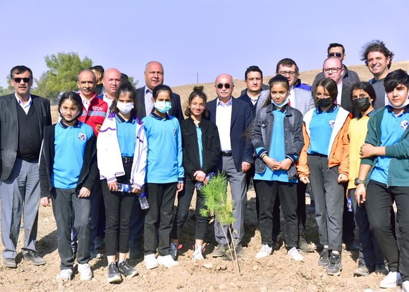 Etkinlikte, protokol üyeleri, fidanları toprakla buluşturup can suyu verdi.
