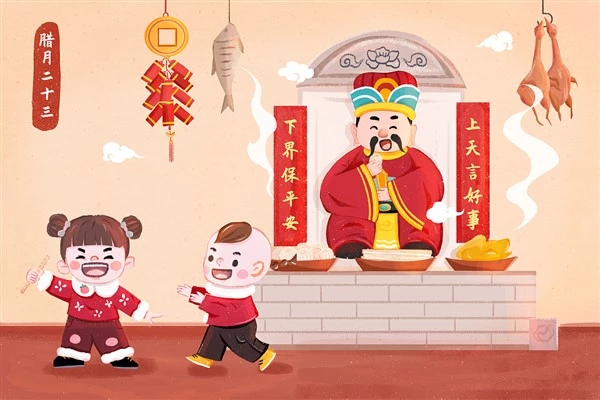 Çin’de aileler, bugün itibarıyla Ocak Tanrısı’na tapınır, yılbaşı temizliği yapar, kağıt kesme sanatıyla yapılmış hat ve çeşitli figürleri pencereye yapıştırır ve bayram beyitleri yazar.