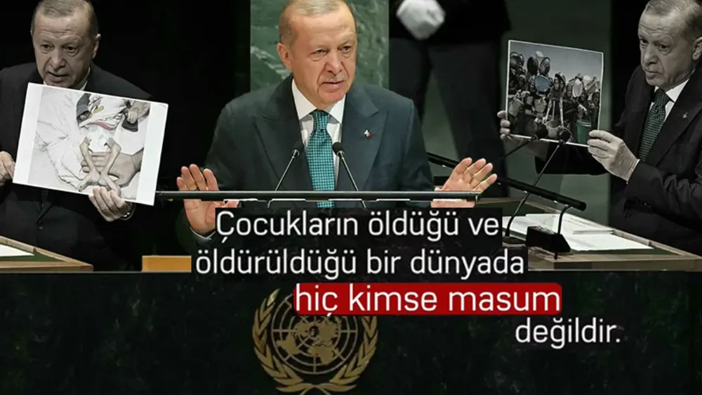 "İnsanlığın ortak vicdanını temsil eden bu kürsüden sizlere hitap etmekten bahtiyarlık duyuyorum. Biz bugün bu kürsüde kendi vatandaşlarımızla birlikte sesi kısılmak istenen Filistin halkına tercüman olmak için de bulunuyoruz. Filistin Devleti'ni tanıyacağını açıklayan tüm ülkelere teşekkür ediyor, henüz bu kararı almayan devletleri ise bir an önce harekete geçmeye çağırıyorum.