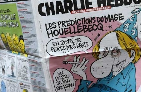 Charlie Hebdo son sayısının kapağında, yeni romanı ile tartışma yaratan yazar Fransız yazar Michel Houellebecq'in son romanını konu alıyor. Houellebecq, 2022'de İslamcı parti ile Müslüman Cumhurbaşkanı tarafından yönetilecek ve kadınların çalışmasına izin verilmeyecek olan bir Fransa portresi çiziyor. Derginin kapağında "Kahin Houellebecq'in tahminleri" yazıyor. Başlığın altında ise "2015'te dişlerim dökülecek" ve "2022'de Ramazan'da oruç tutmaya başlayacağım" cümleleri görülüyor.