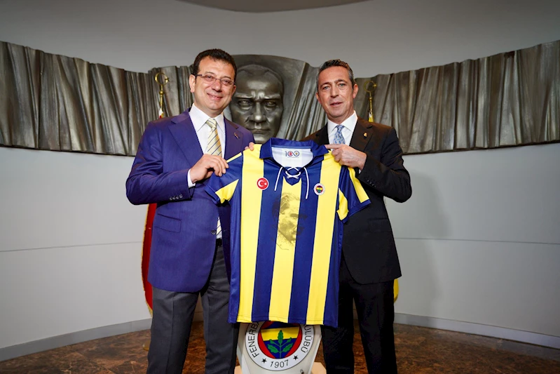 Koç, açıklamaların ardından İmamoğlu’na, sırtında adı yazan, 34 numaralı, Cumhuriyetin 100. yılı için özel üretilmiş Fenerbahçe formasını takdim etti.