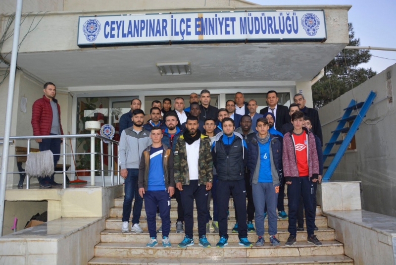 Ceylanpınar ilçe Emniyet Müdürlüğünden ayrılan Belediye yetkilileri ve futbolcular Çevik Kuvvet Grup Amirliğinde görev yapan polis memurlarını ziyaret ederek başsağlığı dileklerinde bulundular.