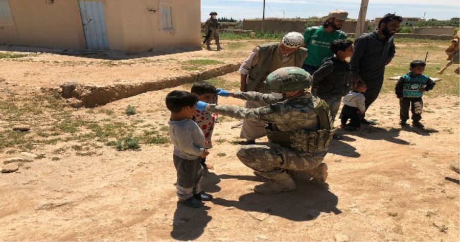 Barış pınarı bölgesinde görev yapan Mehmetçikler tarafında Bölgede bulunan yardıma muhtaç 372 Çocuğa giyim yardımında bulundu.
