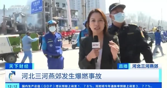 Bir videoda üniformalı adamlar, CCTV muhabiri Yang Hailing'in patlama mahallindeki devlet yayın kuruluşunun stüdyosunda haber spikerleriyle konuşmasını yaparken onun yayınını kesiyor. Haber spikerlerinden biri, raporun engellenmesi nedeniyle gözle görülür bir şekilde şok olmuş görünüyor.